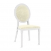 This elegant Louis XV-style chair features a classic white-painted or white-finished wooden frame with the ornate, curved lines characteristic of 18th-century French design - including cabriole legs, subtle carvings, and a graceful silhouette. The standout feature is the luxurious sapphire velvet cushion (a rich, deep blue velvet fabric), which provides a striking contrast against the white frame and adds a touch of opulence and comfort. It is ideal for weddings, galas, upscale events, banquets, offering both visual sophistication and practical seating.The removable or fixed velvet cushion enhances comfort while maintaining the chair's refined aesthetic. Many versions in this style are designed for stacking or easy transport in event settings.Specifications - Frame Finish: White (painted or distressed white wood)