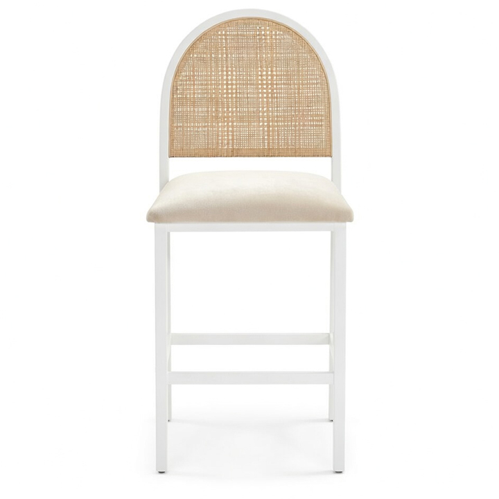 The Hollis Stool White Cane brings a fresh, light, and sophisticated look to any event. Featuring a crisp white frame paired with a beautifully woven cane backrest, this bar stool offers a breezy coastal-modern vibe that works beautifully for beach weddings, garden parties, destination events, and upscale casual celebrations.Comfortable, stylish, and airy, it adds effortless charm around bars and high-top tables.Specifications - Style: Coastal Modern / Transitional