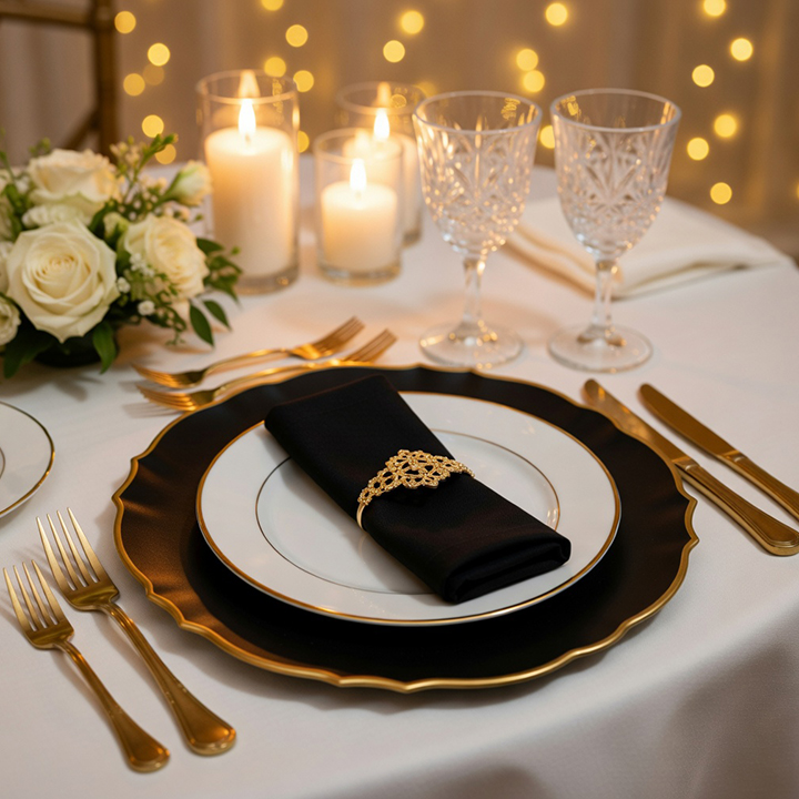 Glass Charger Black Cedar w/ Gold Rim (13") for Rent