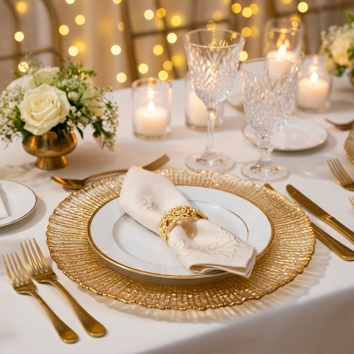 Reef Glass Charger with Folio Gold Rim (13") for Rent