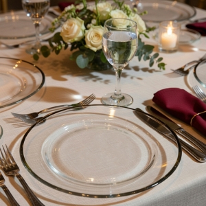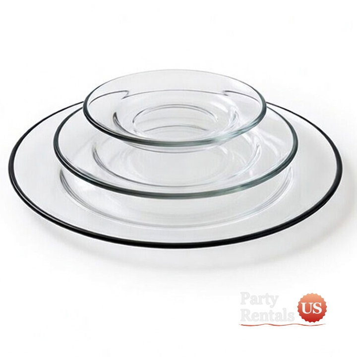 Glass Black Rim Dinnerware for Rent