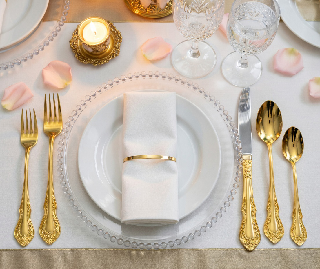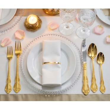 To set a regal tone for an event, using the "King Arthur" pattern is the way to go. This gold-plated silverware provides the ultimate opulence and elegance to all table settings. The floral motif is etched to perfection and includes small cut-outs at the base of each handle. Choose from various utensil options and treat your guests like royalty.