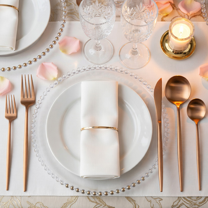 Vera Rose Gold Flatware for Rent