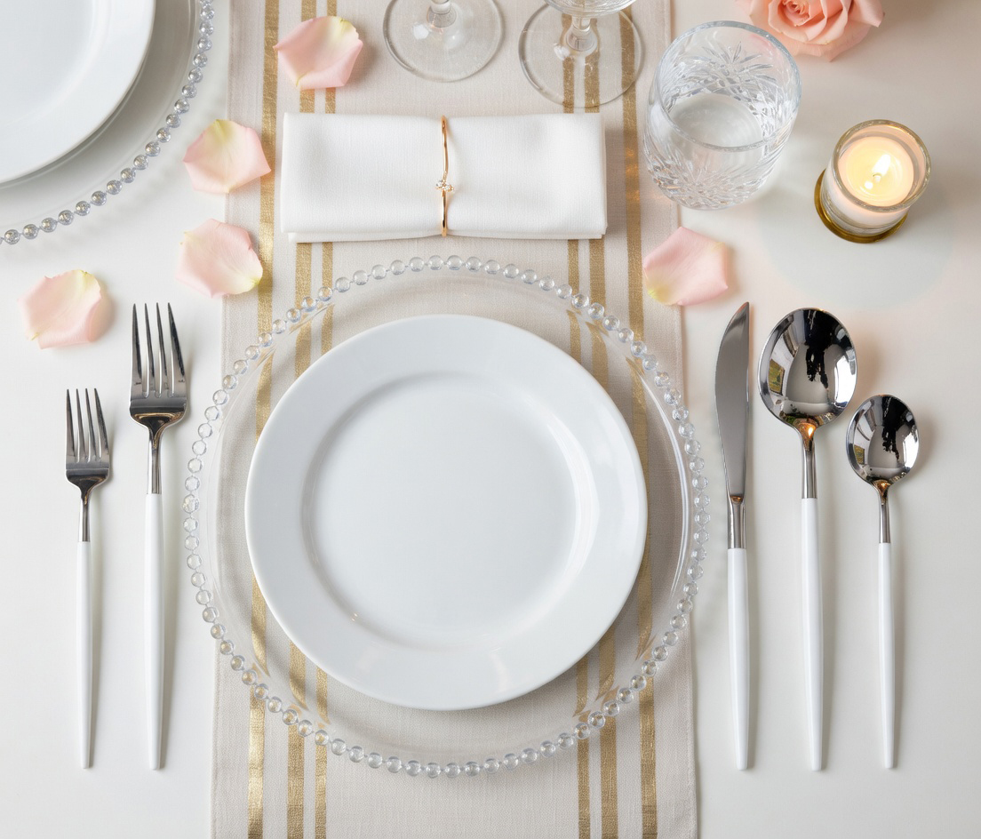 Vera Silver White Handle Flatware for Rent