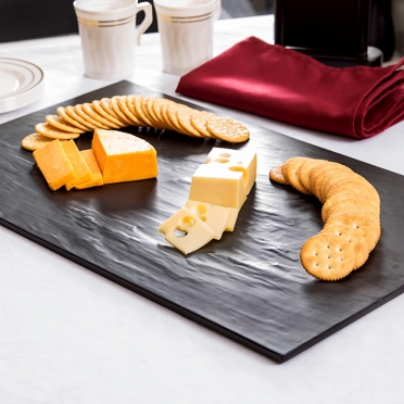 To make a great first impression, display your party's appetizers on our "Slate Board." The rustic design will add a natural appeal to your gathering. It is a stylish place to offer crackers and cheese, bread, or other hors d'oeuvres. It is sure to be a piece that receives many compliments from your guests.